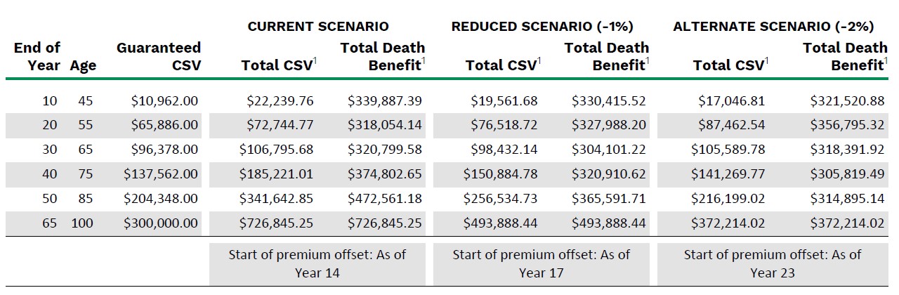 - Project the guaranteed and non-guaranteed values, enabling your clients to compare cash surrender values and amounts payable at death, and help your clients get a better sense of how things can change over time.