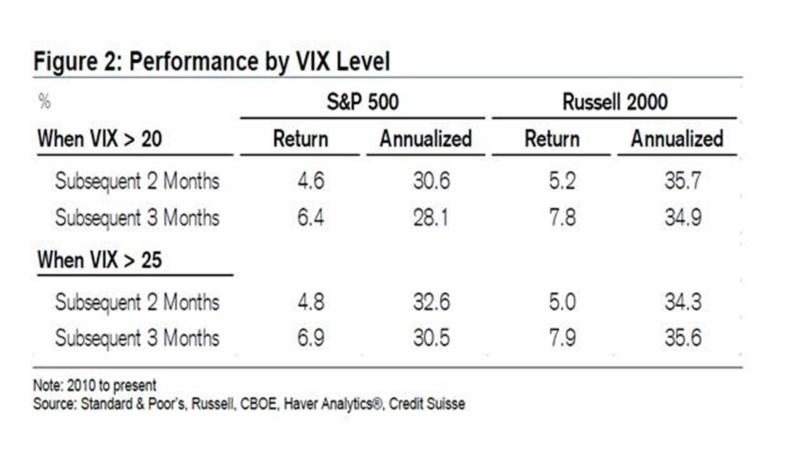 We remain firmly in the camp that this is a buying opportunity, since we see a prolonged business cycle. None of the fundamentals have changed even one bit, and this pullback simply gives a good entry point heading into RRSP season. Also, it is worth nothing that historically, when the VIX index jumps to current levels, the expected return over the next 2 to 3 months is firmly in positive territory (see table below).